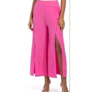 NWT Young Fabulous & Broke Linen Blend Wide Leg Slit Front Pant- Hot Pink Sz S