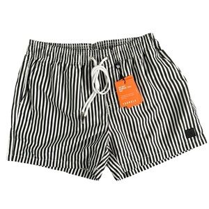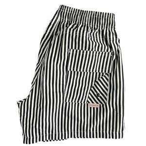 NWT YoungLA 1056 Striped Swim Shorts Black White Size Small 4’ inseam