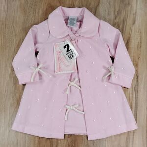 💜NWT Youngland Pink & Cream Polka Dot Coat & Sleeveless Dress Set 24 Months