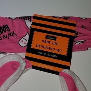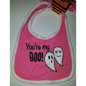 NWT You're My Boo! Pink Ghost Halloween Bib & Headband Set Size 0-12 Months