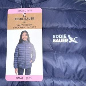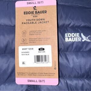 NWT Youth Eddie Bauer Down Packable Jacket size Small 6/7 Navy Blue
