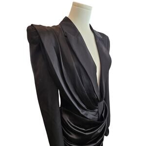 NWT Yris Black Maxi Deep Plunge Drape Dress Sz. Large