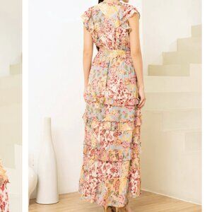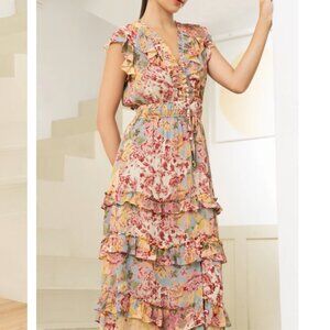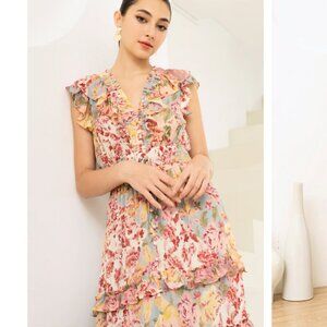 Cecile maxi floral dress has it all - a comfy elastic waistband, a ruffle v-neck, and a button-down design with charming ruffle skirt details. Get ready to make heads turn and feel absolutely fabulous in this must-have dress.