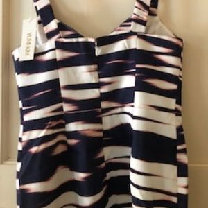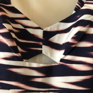 Modified stripe print covers this Yumi Kim dress. Cut out accent the bodice. Sturdy shoulder straps. Hidden back zip. Lined.