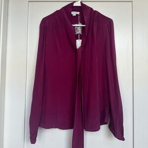 NWT Yumi Kim Womens Burgundy Red Long Sleeve Fit To Be Tied Top Size L