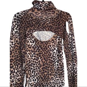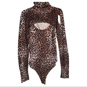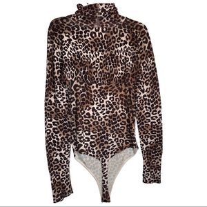 NWT Yummy Sweater Co. Bodysuit & Cropped Soft Sweater Warm Leppard Print