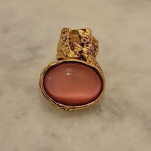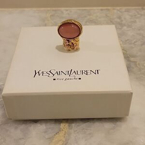NWT Yves Saint Laurent Sz 4 RARE Pink YSL Arty Cabochon Statement 24KT Gold Ring