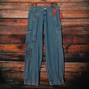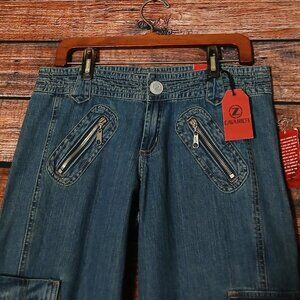 NWT Z Cavaricci Jeans Size 9 Rare Vintage 90s Cargo Jogger Mid Rise Blue Denim