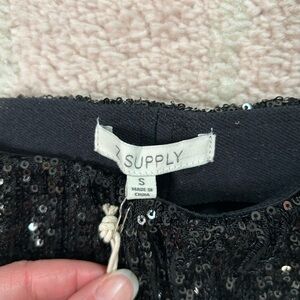 NWT Z Supply Black Sequin Straight Leg Pants High Rise Size Small
