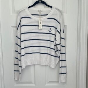 NWT Z Supply Nautical Striped Sweater - White and Blue. The anchor is embroidered. Embrace a nautical vibe with this stylish striped sweater. Featuring a classic anchor detail, this white and blue sweater is perfect for casual outings. Stay cozy and chic all season long.