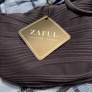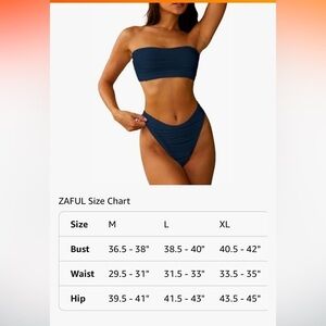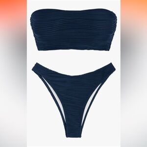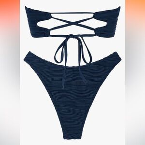 NWT ZAFUL Strapless Wave Bandeau Bikini 2 Piece Cheeky Solid Lace up medium