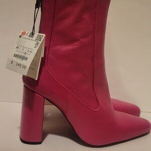 NWT ZARA 2020 HOT PINK RUNWAY COLLECTION ZIP UP HIGH HEEL LEATHER BOOTS Sz 9.