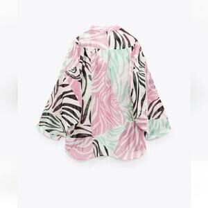 NWT ZARA ANIMAL PRINT SEMI-SHEER BLOUSE MULTICOLORED