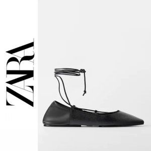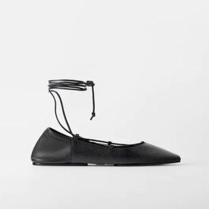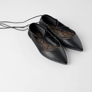 NWT ZARA ANIMAL PRINT TIED BALLET FLATS