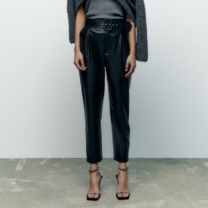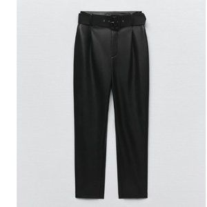 NWT ZARA BELTED FAUX LEATHER PANTS black