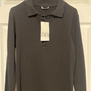 NWT Zara Ribbed dress with polo collar, medium, ribbed, midi length.