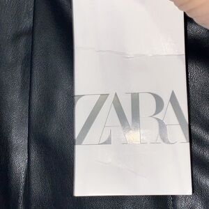 NWT ZARA BLACK FAUX LEATHER SHORTS WO SIZE MED WAIST 15” SIDE TO SIDE INSEAM 3” LENGRH APPROX 15” FROM WAIST TO HEM POCKETS ZIPPER CLOSURE EXCELLENT MEW CONDITION