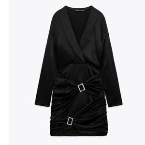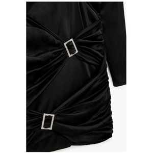 NWT ZARA BLACK JEWEL TRIM SATIN EFFECT DRESS SIZE LARGE