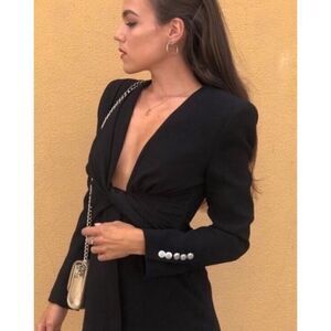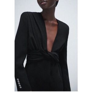 Zara black blazer dress -neck blazer dress with long sleeves and knot-type