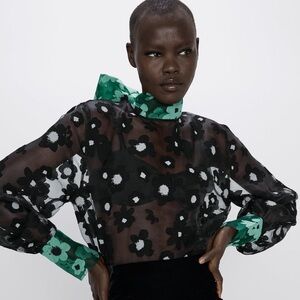 NWT ZARA BOW TIE POLKA DOT BLOUSE SIZE S