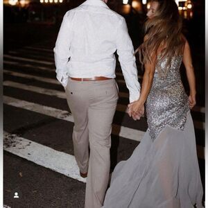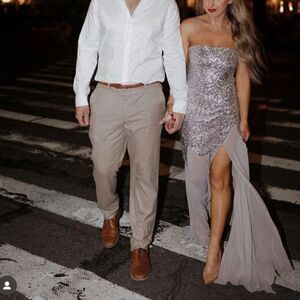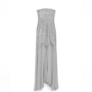 NWT ZARA Barbie Sequin Gray Silver Strapless midi Dress semi-sheer asymmetric