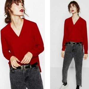 NWT ZARA Basic Collection Red Blouse Size Small V Neck
