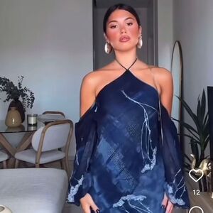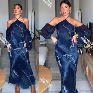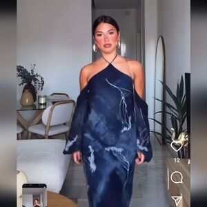 NWT ZARA Benla HALTER DRESSโWITH METALLIC THREAD AND BEADING