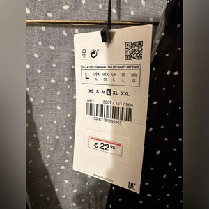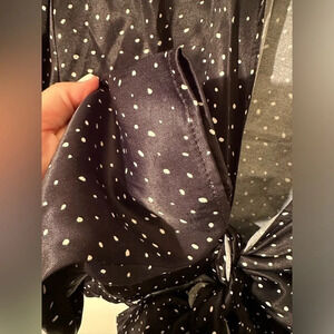 NWT ZARA Black Blouse White Mini Polka Dots Long Sash Wrap Top Collar LARGE