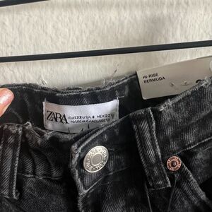 NWT ZARA Black Mom Fit High Rise Bermuda Denim Jean Shorts Womens 0