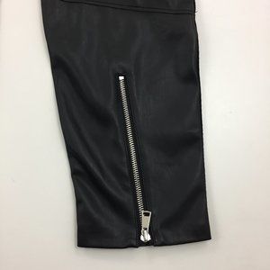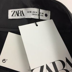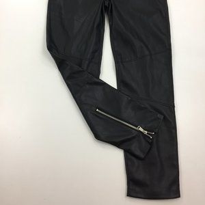 NWT ZARA Black THE BIKER PANT Faux Leather Silver Zip Pockets & Back Hem