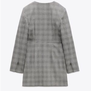 NWT ZARA Blogger Favorite Gray Black Plaid Blazer Mini Dress XS Preppy