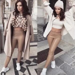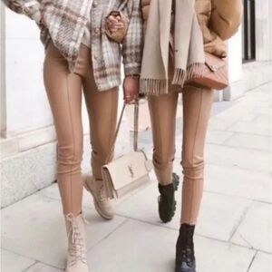 NWT ZARA Bloggers Favorite High Waist Vegan Leather Cigarette Legging in Camel M