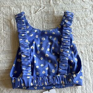 NWT ZARA | Blue Daisy Floral Print Crop Tank Top | Sz Small