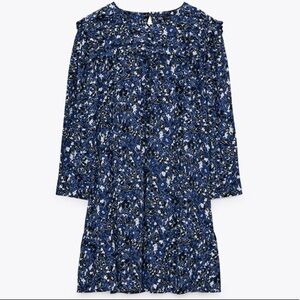 NWT ZARA Blue Floral Long Sleeve Ruffle Hem Mini Dress Size S