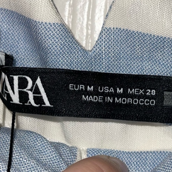 NWT ZARA Blue White Striped Linen Blend High Rise Cropped Trousers Size Medium