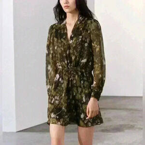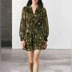 NWT ZARA CAMOUFLAGE GREEN PRINT LONG SLEEVE DRESS