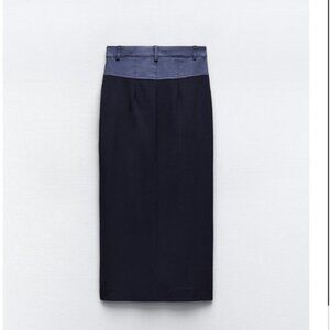 NWT ZARA CONTRASTING WAIST PENCIL SKIRT NAVY BLUE