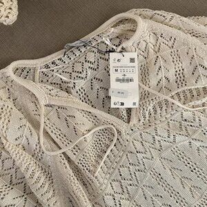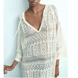 NWT ZARA Crochet Pointelle Maxi Dress Sheer Open Knit Long Sleeve Beach Cover Up Dress