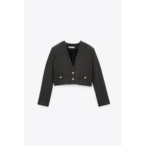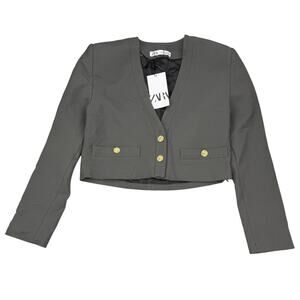 NWT ZARA Crop Blazer with Gold Buttons XS Dark Gray
