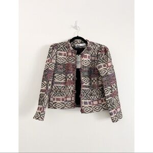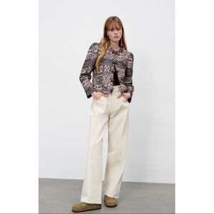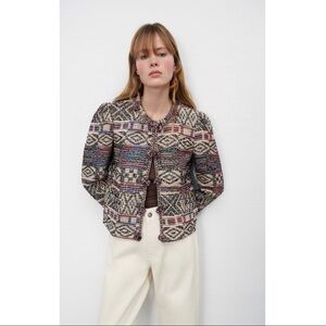NWT ZARA Cropped Geometric Multicolor Embroidered Wool Blend Jacket Sz S