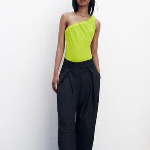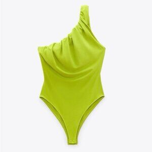NWT ZARA Draped Asymmetrical Neckline and Strap Pistachio Bodysuit 5039/332 Sz S