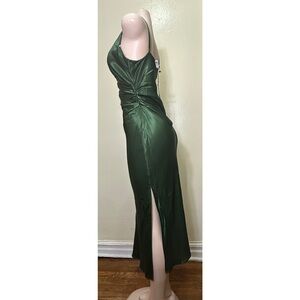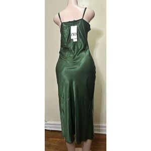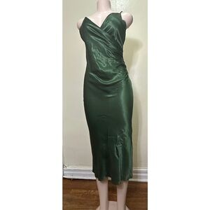 This elegant green satin dress is perfect for any occasion. Its sleek design and luxurious fabric make it a must-have in your wardrobe.small tear in the zipper, see photos