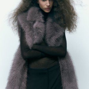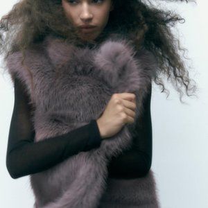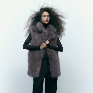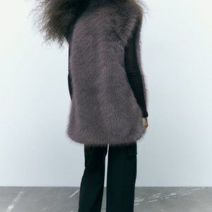 NWT ZARA FAUX FUR VEST GRAY - REF. 6318/249 XS-S, M-L