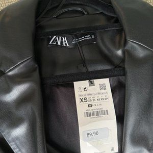 NWT ZARA FAUX LEATHER CUT-OUT BLAZER DRESS - BLACK Size XS