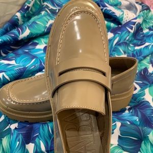 NWT ZARA FLAT TRACK SOLE LOAFERS KHAKI GREEN