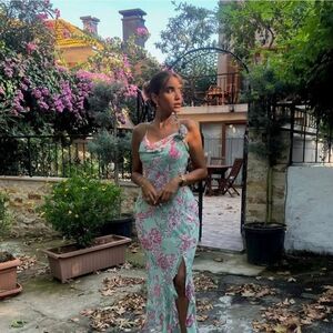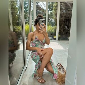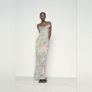 NWT ZARA FLORAL PRINT SLIPβDRESS GREEN AND PINK