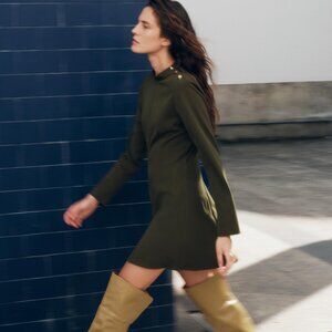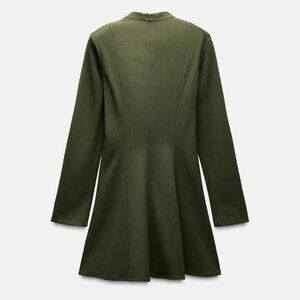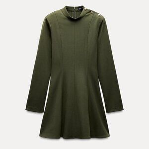 NWT ZARA GOLDEN BUTTON SHOULDER SHORT DRESS KHAKI