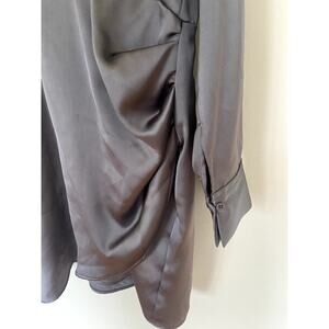 NWT ZARA GREY SATIN SHORT WRAP DRESS LONG SLEEVES SIZE XL