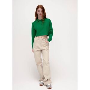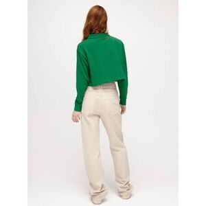 NWT ZARA Green Cropped Long Sleeve Collared Polo Shirt, Size Small