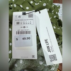 NWT ZARA Green Polka Dot Ruched Dress Sz Medium